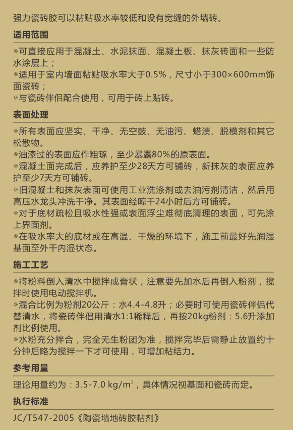 您現在的位置:首 頁(yè) > 產(chǎn)品展示 > 強力瓷磚膠